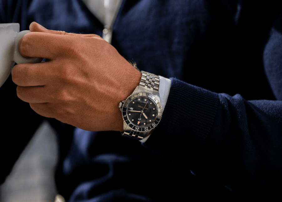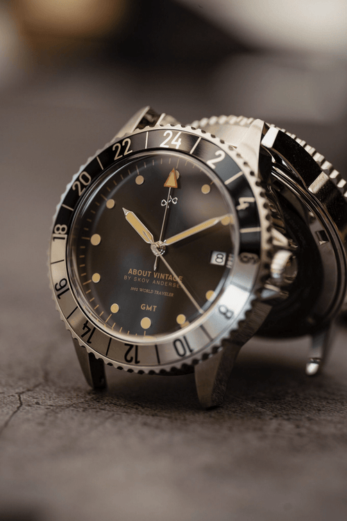 GMT funktionen blev oprindeligt opfundet til piloter, der fløj gennem tidszoner i løbet af få timer, så de kunne holde styr på den lokale tid samtidig med, at de kunne se tiden, dér hvor de kom fra. Da GMT funktionen er ikke længere kun er forbeholdt verdens første store rejsende, er 1982 GMT World Traveler den ideelle rejsepartner, når du tager afsted mod nye eventyr.