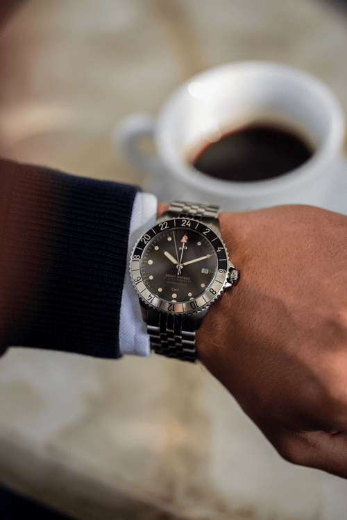 GMT funktionen blev oprindeligt opfundet til piloter, der fløj gennem tidszoner i løbet af få timer, så de kunne holde styr på den lokale tid samtidig med, at de kunne se tiden, dér hvor de kom fra. Da GMT funktionen er ikke længere kun er forbeholdt verdens første store rejsende, er 1982 GMT World Traveler den ideelle rejsepartner, når du tager afsted mod nye eventyr.