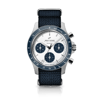 1960 Racing Chronograph hylder motorsportens storhedstid, inspireret af en æra, hvor legender som Ferrari og Maserati dominerede banerne. Dette ur har et holdbart japansk Miyota-urværk og en kronograf med tre sub-dials til præcis tidstaning. Urets keramiske bezel er stort set ridsefri og tilføjer både luksus og robusthed. Perfekt til racerløbsentusiaster, men også ideelt til hverdagens opgaver som at time din træning eller koge æg. Du får enestående nøjagtighed og stil med 1960 Racing Chronograph.