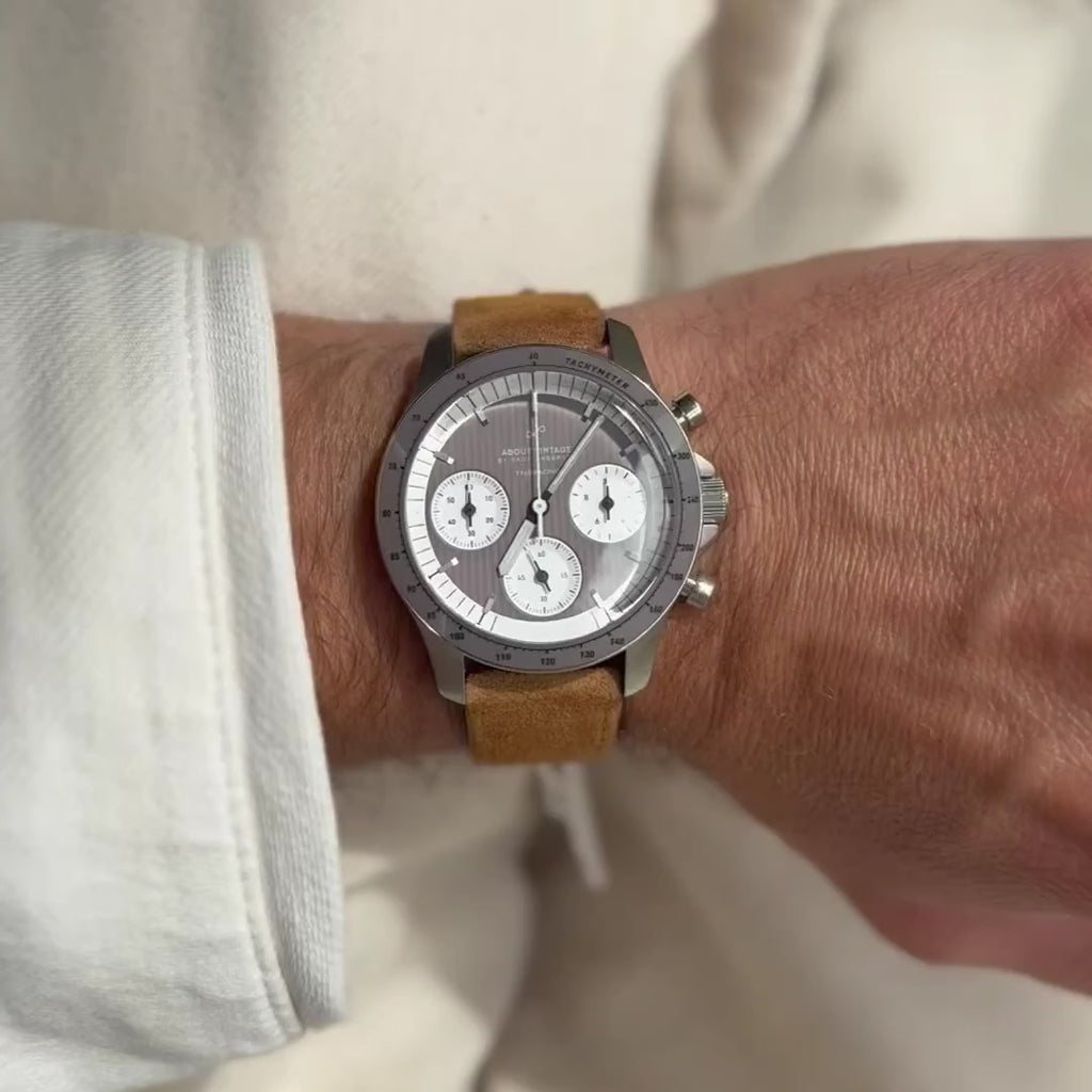Med en varm grå urskive og keramisk bezel samt brun ruskindsrem, er denne special edition indbegrebet af sommer.