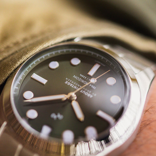 1964 Horizon bærer referencer til japansk designhistorie, med enkelhed og funktionalitet som dens vigtigste faktorer. Et alsidigt ur til både sport og cocktails, hvor æstetik og funktion går hånd i hånd.