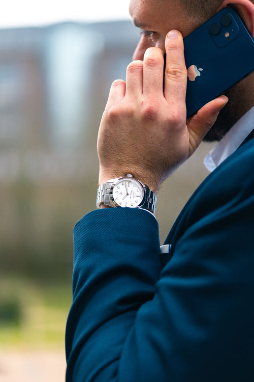 Den riflede skruekrone sikrer nem håndtering og giver uret en dybdevurdering på 10 ATM, hvilket betyder, at uret er vandtæt til 100 m. Det ridsefaste safirglas og 316 L kirurgisk stål gør dette ur så holdbart som overhovedet muligt, en god følgesvend til enhver opgave.
