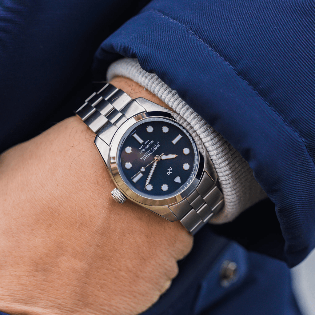 1964 Horizon bærer referencer til japansk designhistorie, med enkelhed og funktionalitet som dens vigtigste faktorer. Et alsidigt ur til både sport og cocktails, hvor æstetik og funktion går hånd i hånd.
