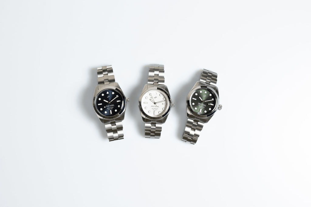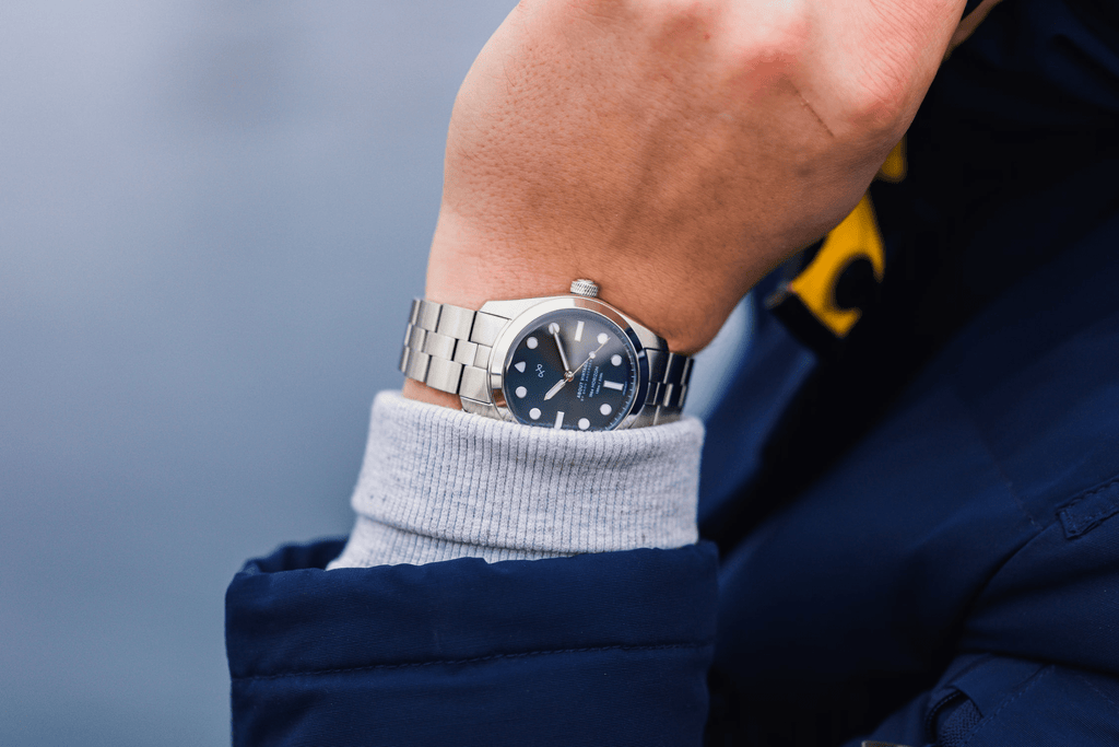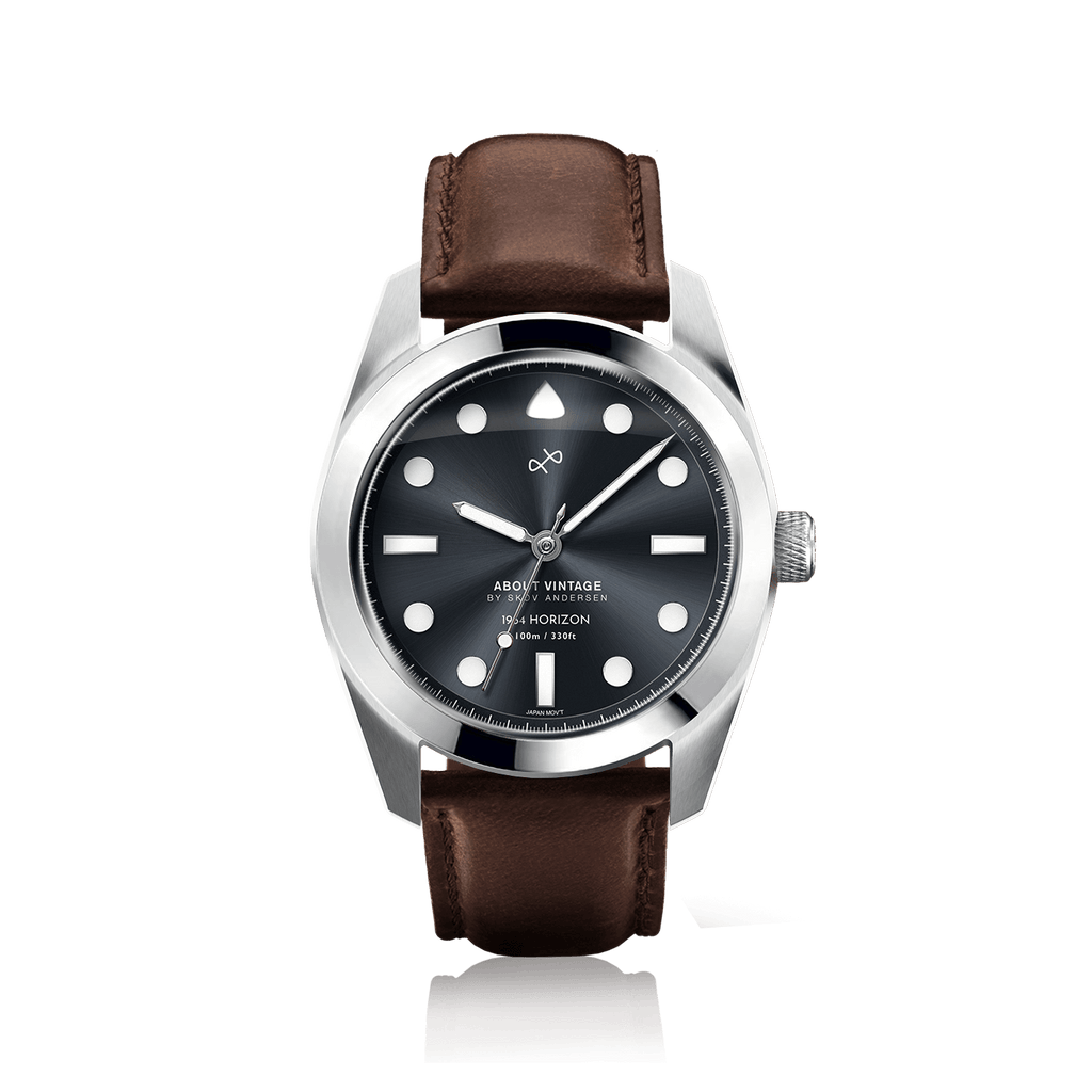 I designprocessen af 1964 Horizon ønskede vi at lave et ur, der både er robust og alligevel raffineret. Noget der både går til sportstøj og jakkesæt. Med inspiration fra Skandinavisk-Japansk designkultur af simplicitet og funktionalitet, er dette meget enkle 3-hånds ur, med store SuperLuminova fyldte timemarkører og visere, indkapslet i en bredskuldret kasse, men strippet for unødvendige detaljer. Hvad vi mener er det bedste af begge verdener: Et sporty, men dresset ur.