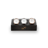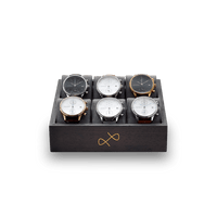 About Vintage kollektionsboks i røget eg med messing farvet logo, inkl. 3 grå ruskindspuder til at holde dine ure. Perfekt til at udstille din kollektion eller organisere dine ure med stil i din skuffe.