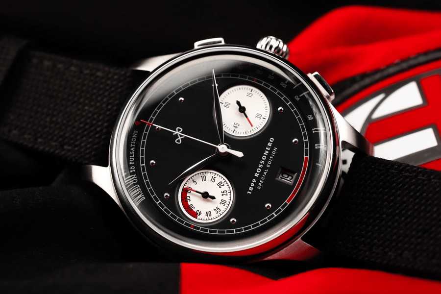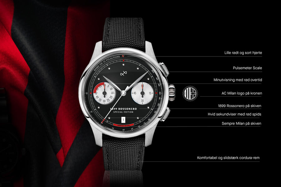 1899 Rossoreo Chronograph er til den stilfulde AC Milan fan, der kender værdien af ægte spænding. Med Pulsometer komplikation kan du måle din puls, og med detaljer som en overtidstæller, logoindgravering på kronen og de klassiske AC Milan farver, er dette ur perfekt til stadion såvel som til kontoret.