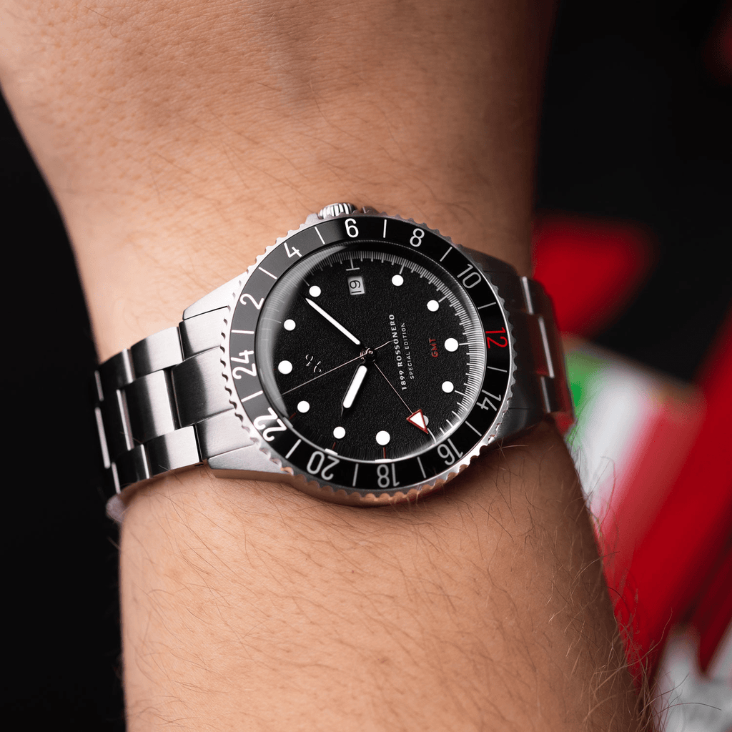 Uret til den ægte AC Milan fan, som følger holdet, hvor end det er. Med 1899 Rossonero GMT er du i stand til at spore to tidszoner på én gang, så du kan holde styr på både Milano-tid og lokal tid med et enkelt blik.