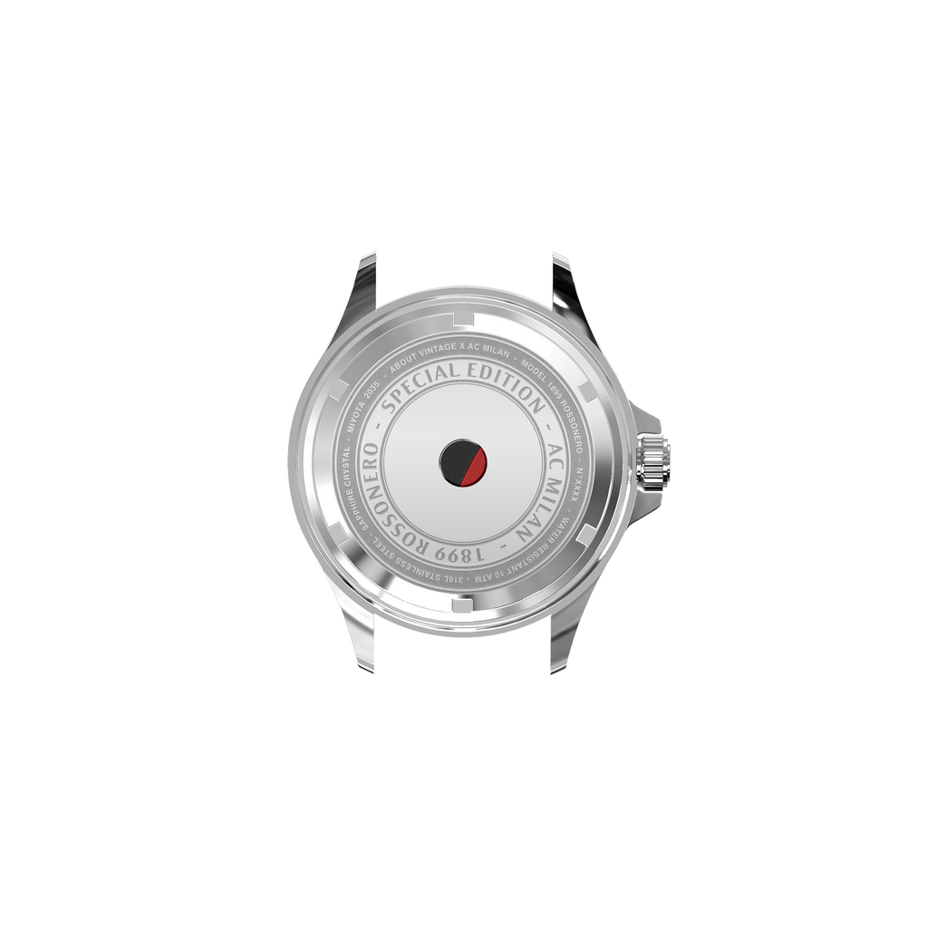 Den fedeste detalje ved Rossonero Familie Kollektionen findes på bagsiden af hvert ur: et unikt stykke af spillertrøjen er blevet indsat i urkassens bagside. Dette gør hvert ur unikt og derudover er det spækket med endnu mere historie og referencern i designet.