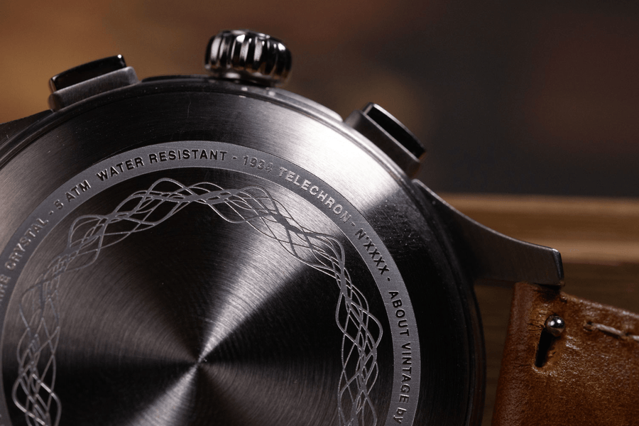 Telechron er også 2.0-kronografen fra About Vintage, med en telemeterskala til måling af afstanden af lyd, samt dato- og stopursfunktioner.