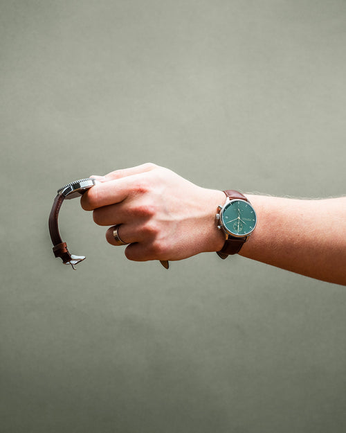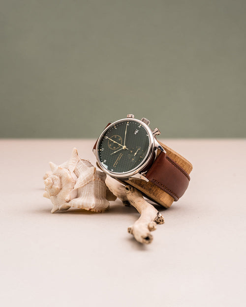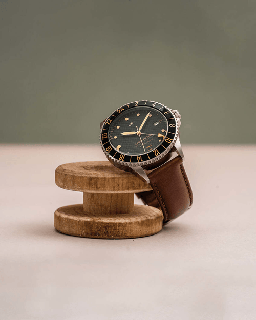 Hver og en af vores ure er opkaldt efter vigtige begivenheder gennem horologisk historie. I 1954 blev det første ur med GMT funktion skabt, og derfor skulle vores GMT Green Turtle opkaldes herefter.