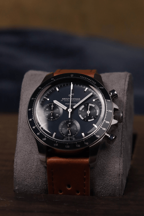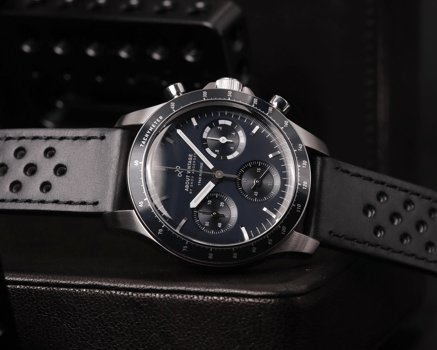Det nye 1960 Racing er et kronografur med alle de fordele, den type ur tilbyder. Det er udstyret med tre sub dials, der viser tyvendedele sekunder for nøjagtig timing af racerbane-omgange til højre, minutter til venstre og løbende sekunder i midten. Uret er drevet af et japansk fremstillet Miyota-urværk, der er bredt kendt for deres holdbarhed og pålidelighed.