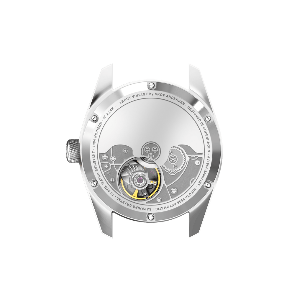 1964 Horizon bærer referencer til japansk designhistorie, med enkelhed og funktionalitet som dens vigtigste faktorer. Et alsidigt ur til både sport og cocktails, hvor æstetik og funktion går hånd i hånd. Det er udstyret med et førsteklasses japansk automatisk urværk - Miyota 9039 - med uovertruffen pålidelighed og høj nøjagtighed. Det er i sandhed en hyldest til urmagerhåndværket.