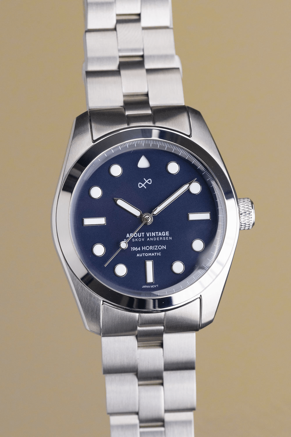 I designprocessen af 1964 Horizon ønskede vi at lave et ur, der både er robust og alligevel raffineret. Noget der både går til sportstøj og jakkesæt. Med inspiration fra Skandinavisk-Japansk designkultur af simplicitet og funktionalitet, er dette meget enkle 3-hånds ur, med store SuperLuminova fyldte timemarkører og visere, indkapslet i en bredskuldret kasse, men strippet for unødvendige detaljer. Hvad vi mener er det bedste af begge verdener: Et sporty, men dresset ur.