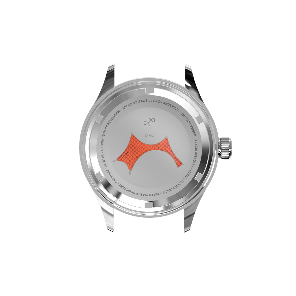 Uret er skabt ud fra stærke kvalitetsmaterialer, såsom ridsefrit safirglas og urkassen i 316L rustfrit stål. Dertil bærer designet præg af en høj detaljegrad - fra den orange dot på kransen til et stykke af den originale Orange Scene placeret i bagkassen.