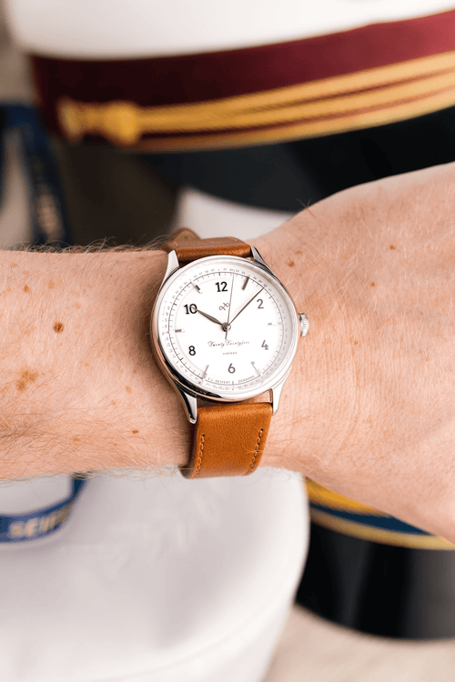 CL Seifert TwentyFive er skabt med udgangspunkt i tidløs elegance og enkelhed, der afspejler studentertidens særlige øjeblikke. Den semimate hvide urskive og de slanke visere giver et rent og klassisk udtryk, der aldrig går af mode. Detaljerne er omhyggeligt udvalgt – fra den indgraverede studenterhue på kronen til den centrale sekundviser, der bringer præcision og æstetik i spil. Designet er ikke kun smukt, men også funktionelt, og kan bæres til både hverdag og særlige anledninger.