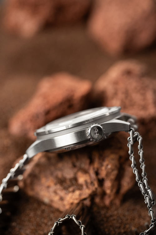 Bonklip stållænken betragtes som et historisk ikon i urverdenen – perfekt til et ur med rødder i historien.
